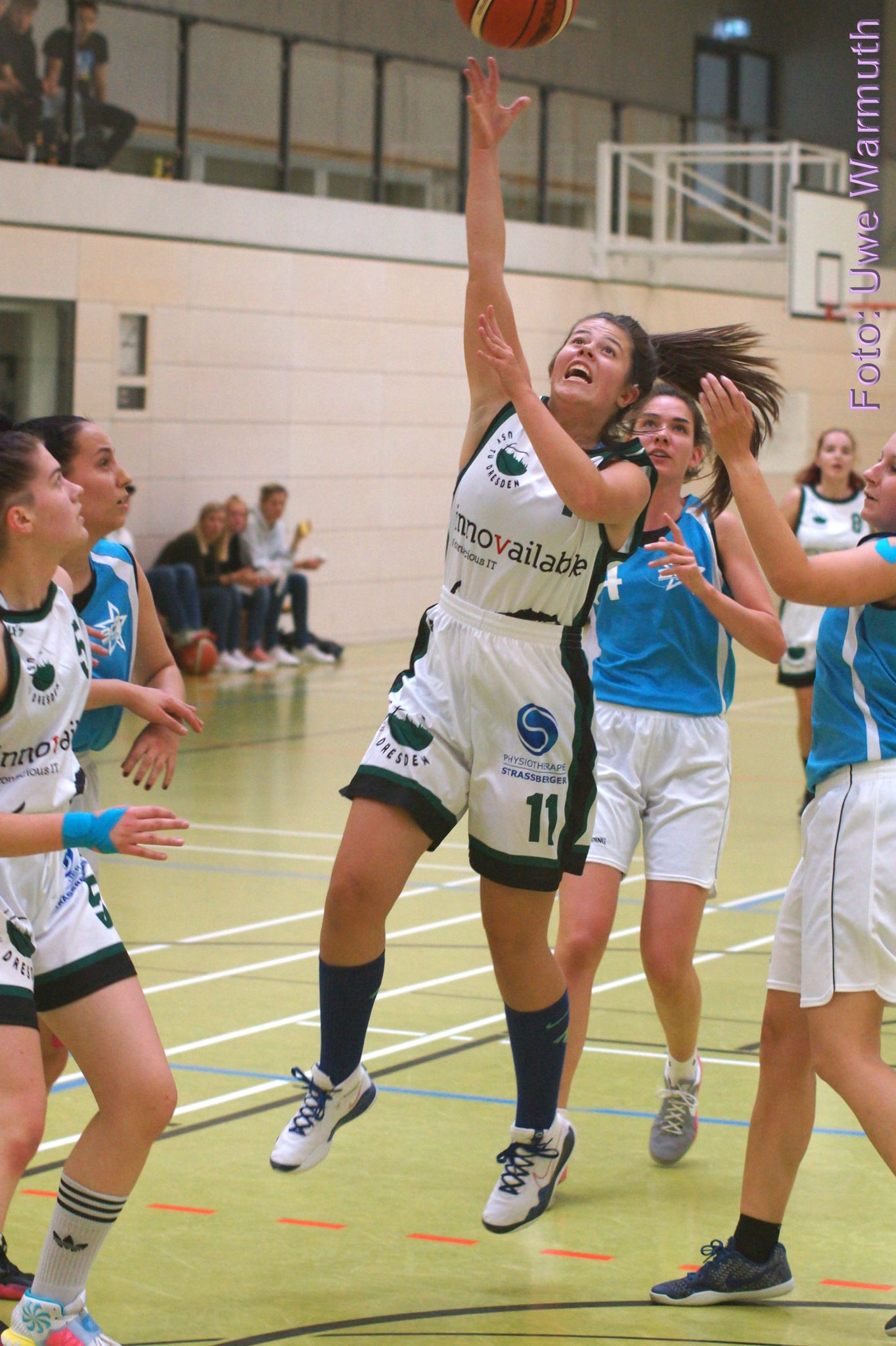 Deshalb kamen wir „Ausgeschlafen“ am Sonntag um 10 Uhr wieder in die Halle und nahmen es mit dem VfL Stade auf. Wir merkten, dass wir unsere Leistung von Samstag auf Sonntag gesteigert hatten. Wir holten plötzlich fast alle Rebounds und kämpften mehr als am Samstag um den Ball. Nach 13 Punkten holten wir langsam auf und haben es sogar geschafft einmal nur noch mit 2 Punkten im Rückstand zu liegen. Wir haben das Spiel am Ende leider gegen Stade verloren (57:74). Wir gewannen allerdings an Erfahrung und können nun unser Spielsystem ausbauen und Kleinigkeiten im Training verbessern.