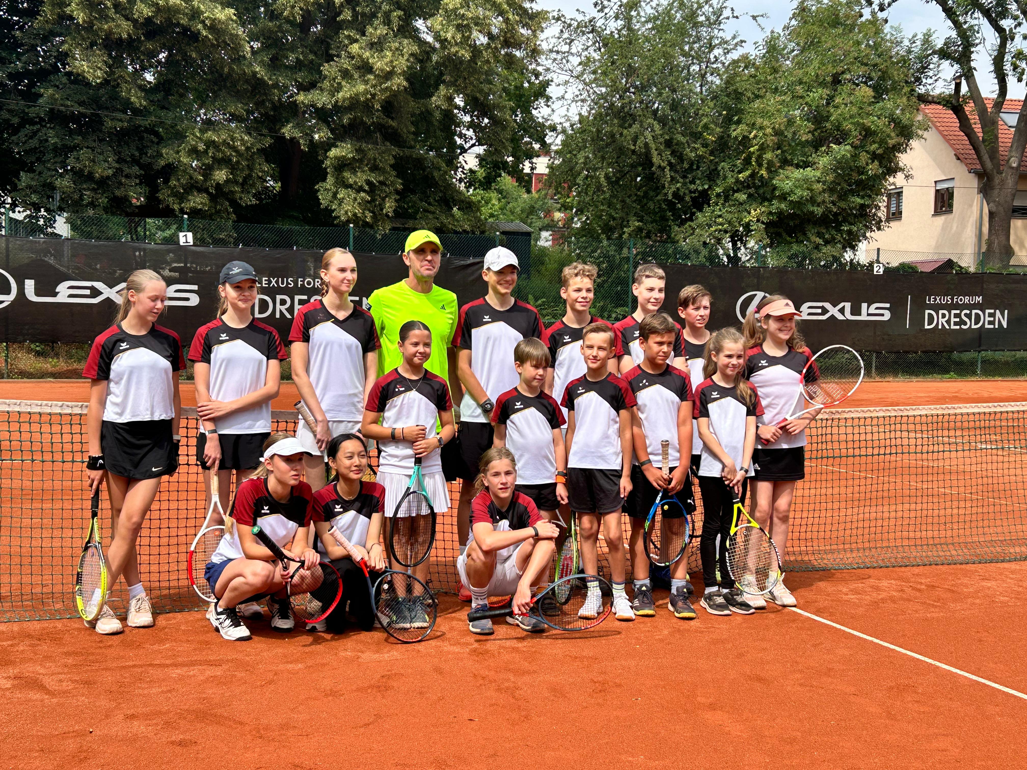 Obendrauf gab es in diesem Jahr dann aber noch ein ganz besonderes Highlight: Wir haben eine Stunde lang mit Mischa Zverev trainiert!! Das war ein tolles Erlebnis.