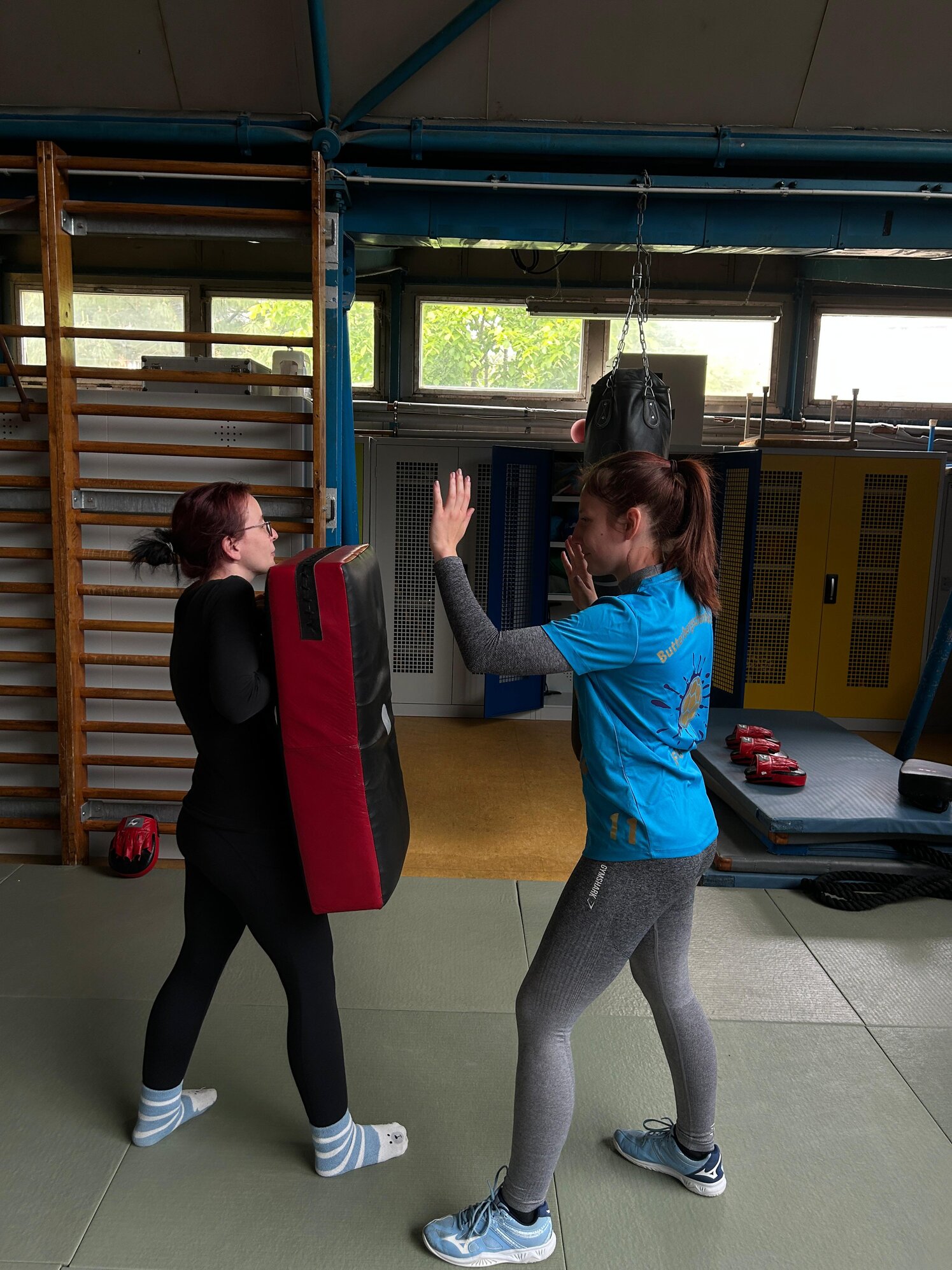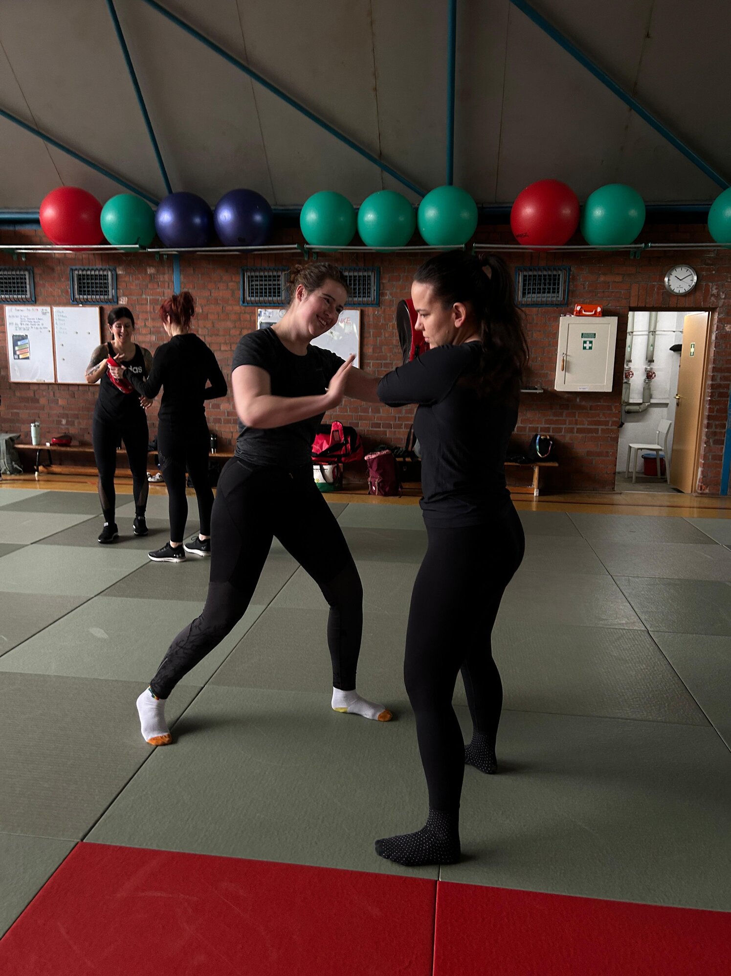 Unter die schon bekannten Gesichter mischen sich immer mehr neue. Unser Ziel ist es, mit Spaß und Freude seiner Trainingspartnerin eine Ohrfeige zu verpassen und diese aber auch gekonnt blocken zu können. Makaber? Dadurch weiß man erst einmal wozu der eigene Körper in der Lage ist! Sich Verteidigen und Schützen zu können, mit ein paar Techniken, ohne jahrelang Kampfsport zu betreiben.
