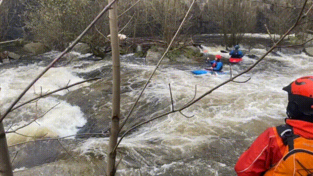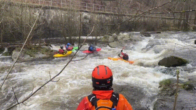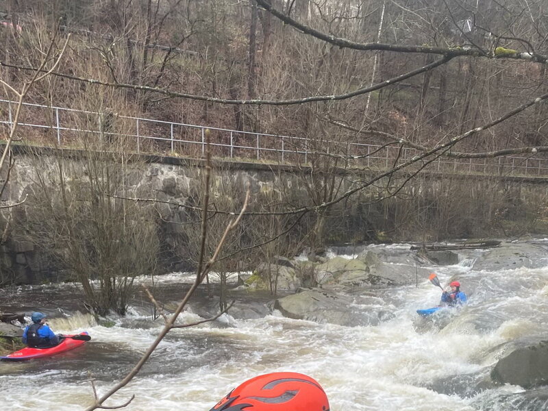 Temperaturen knapp oberhalb des Gefrierpunktes hielten nicht gerade wenige Paddler davon ab sich an diesem Sonntagmorgen ins Erzgebirge aufzumachen. Wir waren mit fünf Paddlern mitten drin. Auf dem Fluss verloren sich die einzelnen Gruppen schnell, es staute sich nirgendwo zu sehr. Die Mulde hielt einige schöne Abfaller bereit, diverse Surfwellen, sowie ein paar fahrbare Wehre, die sich nicht zuletzt durch die Hilfe von Einweisern am Ufer gut bewältigen ließen. Alles in allem meist WWII-III+.Wenige Wehre galt es zu Umtragen, wobei das Hühnerwehr mit seiner schmalen Einstiegstelle direkt an der 2m-Mauer eins der wenigen Nadelöhre darstellte. Hier half die bereitgestellte Leiter des örtlichen Fischers sehr. Bäume lagen diesmal nicht über die komplette Flussbreite und waren immer umfahrbar.