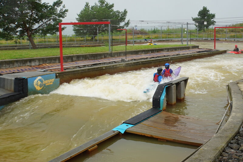 Bei einer ersten Probefahrt hat sich herausgestellt, dass das "Boot" zwar schwimmt und sich fahren lässt ... aber leider nicht ganz dicht ist. Aber immerhin sind es nur 1-2 Schwämme alle 5min. Somit war klar: Es geht nach Markkleeberg!