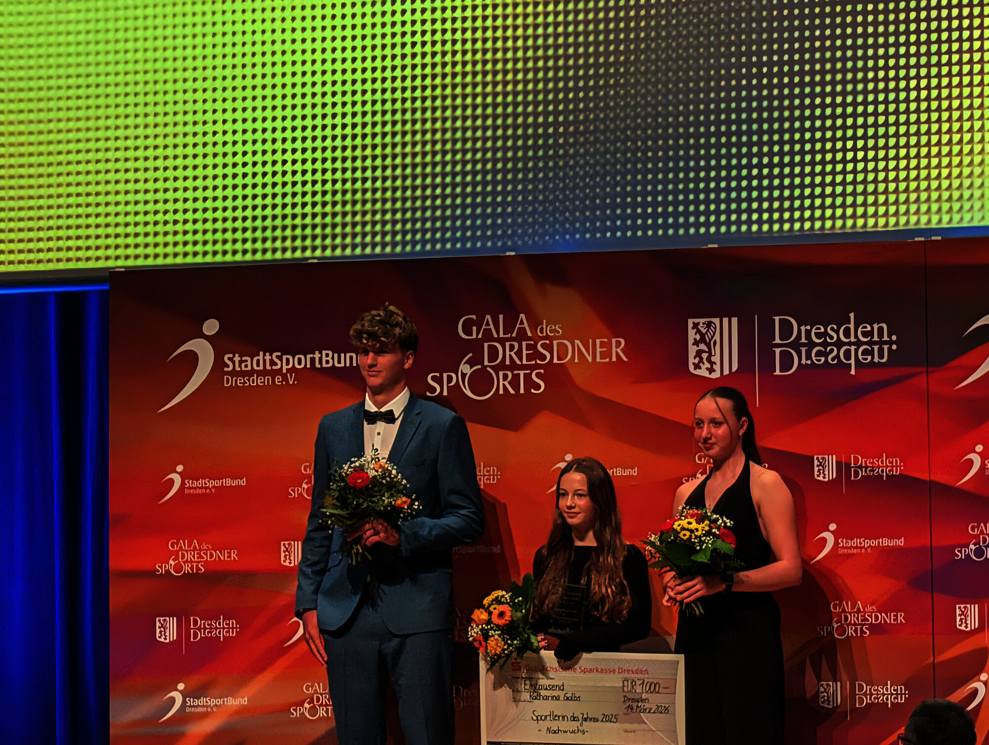 Bei der Gala des Dresdner Sports im Internationalen Congress Center Dresden am Sonnabend, 14. März 2026, zeichneten Oberbürgermeister Dirk Hilbert und StadtSportBund-Präsident Lars-Detlef Kluger die erfolgreichsten Dresdner Athletinnen und Athleten aus.